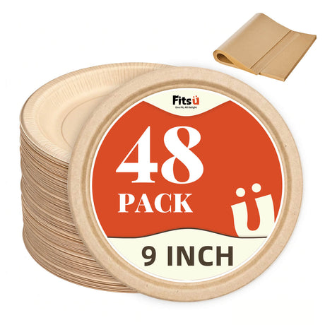 Fitsu Compostable Paper Plates 9 Inch Bulk Plates